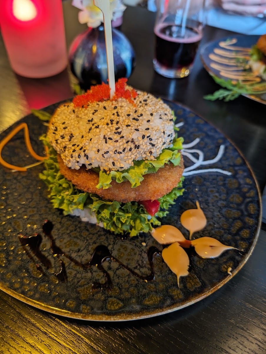 Original sushi restaurant. The tofu soup was amazing. The same with the plateau with the sushi. The salmon was amazing, the same delicious was the tuna with avocado. The salad was also terrific. Prices were really reasonable especially for Stuttgard
